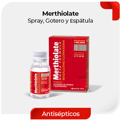 Merthiolate forma parte de la vida familiar de generaciones de argentinos, ofreciendo antisépticos tópicos de amplio espectro y alta efectividad para el tratamiento de heridas, raspones, quemaduras, lesiones y para la prevención de infecciones; no arden ni irritan la piel. Merthiolate es un aliado en casa.